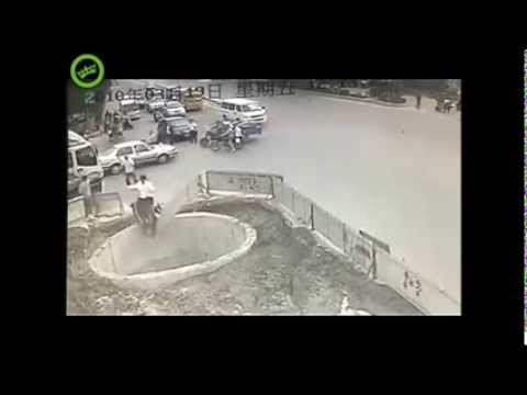 Um motociclista consegue ter vários acidentes seguidos... bate numa carrinha, bate num carro, bate numa mota, bate num autocarro e por fim...